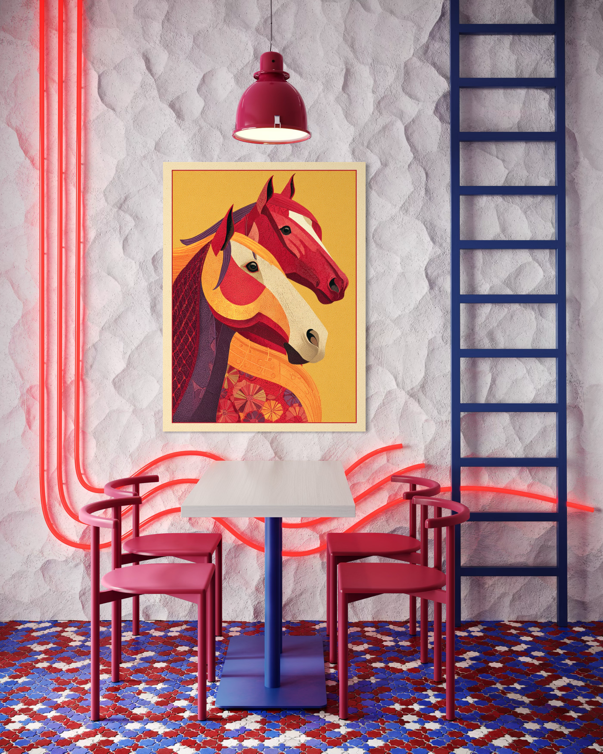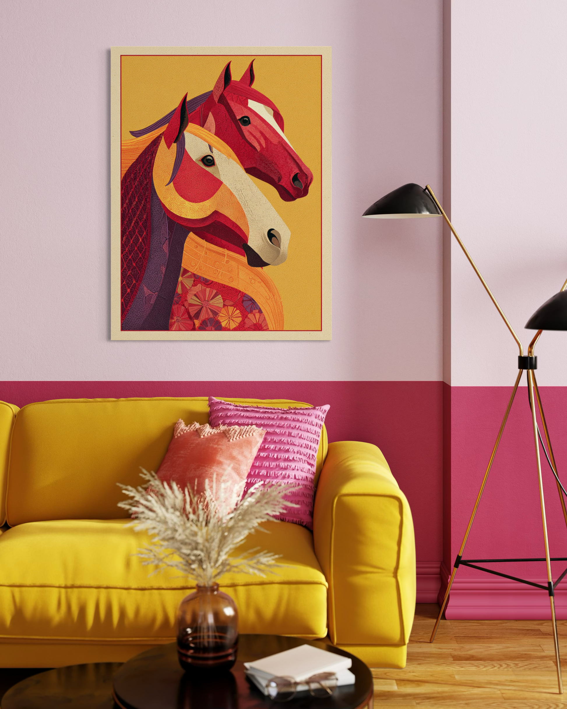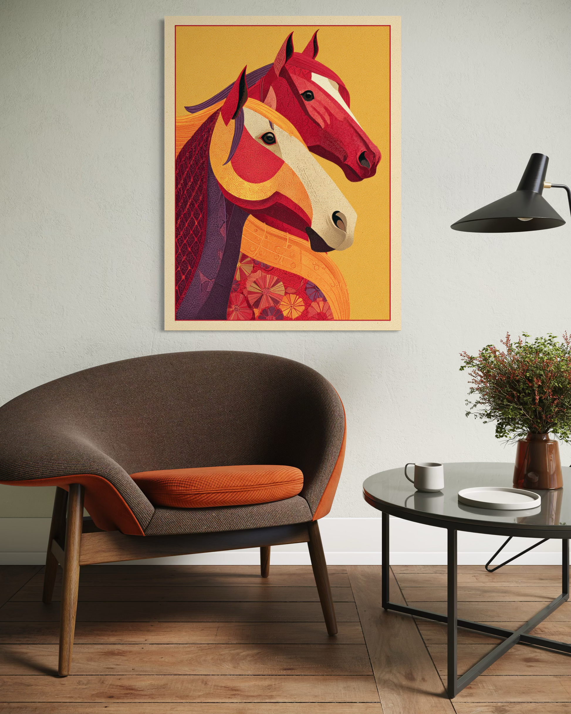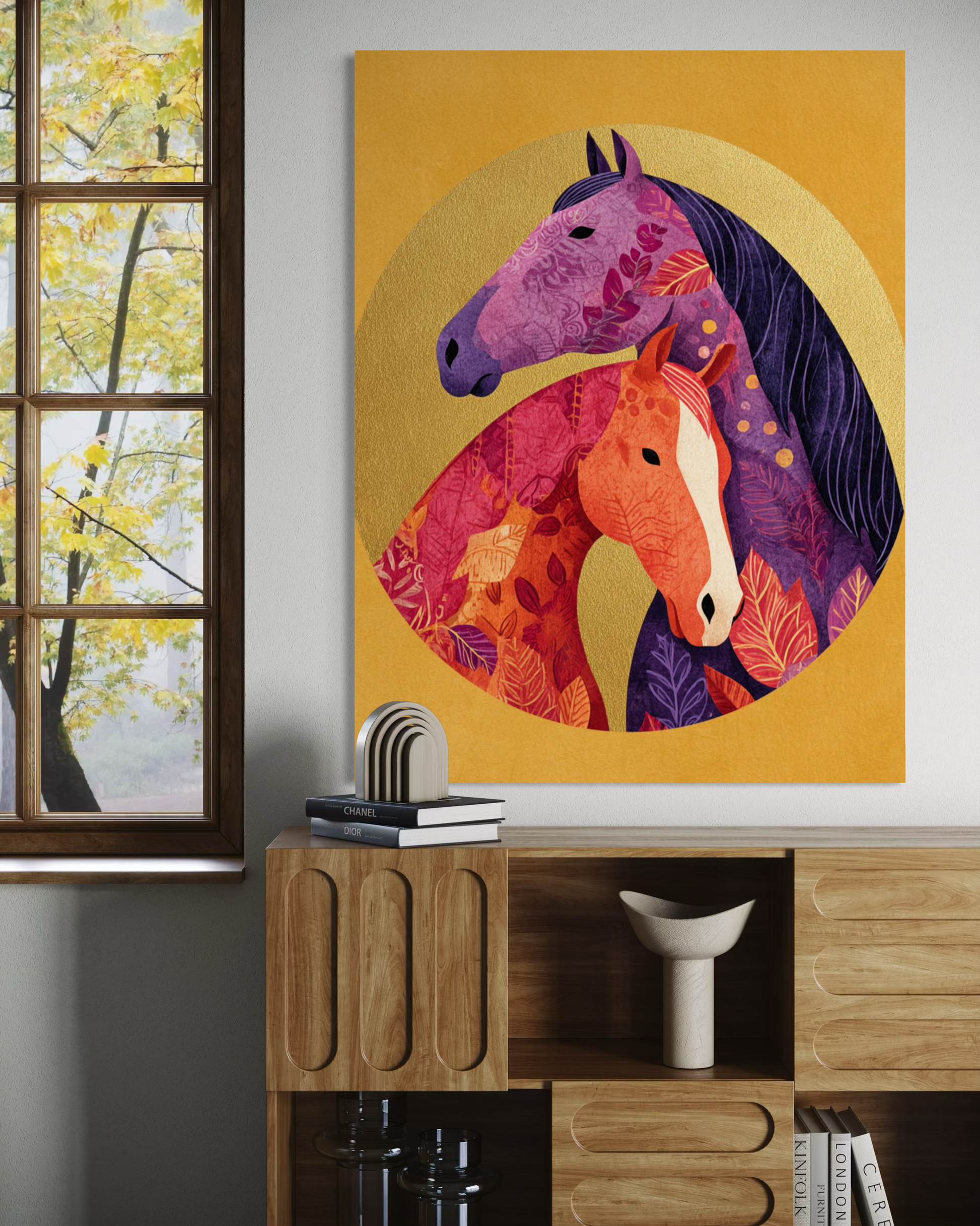 This painting blesses the Year of the Horse with financial growth, creative success, and long-term fortune.